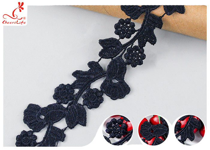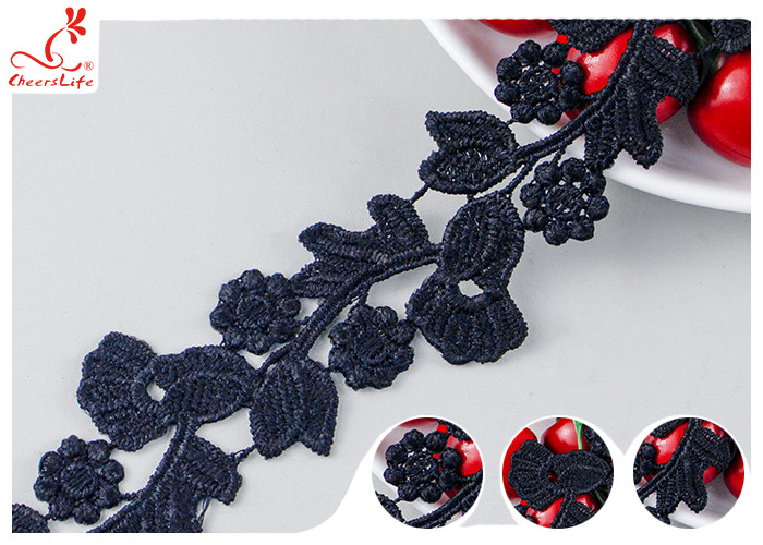 Hohe Farbechtheit Schwarze florale Stickerei Spitzenborte über wasserlöslich zeigt dauerhafte Farbe, ist geeignet für die Massenproduktion in der Fabrikin 3 Tagen bemustert werden