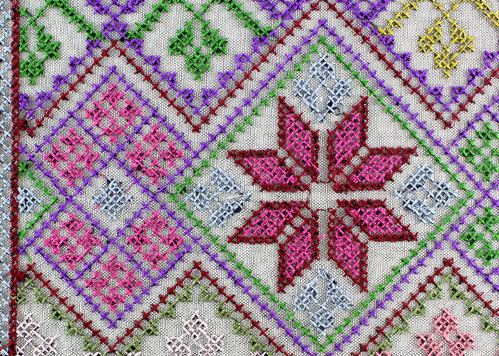 Mehrfarbiges Kreuzstichgewebe aus Schiffli Spitzenmaschine